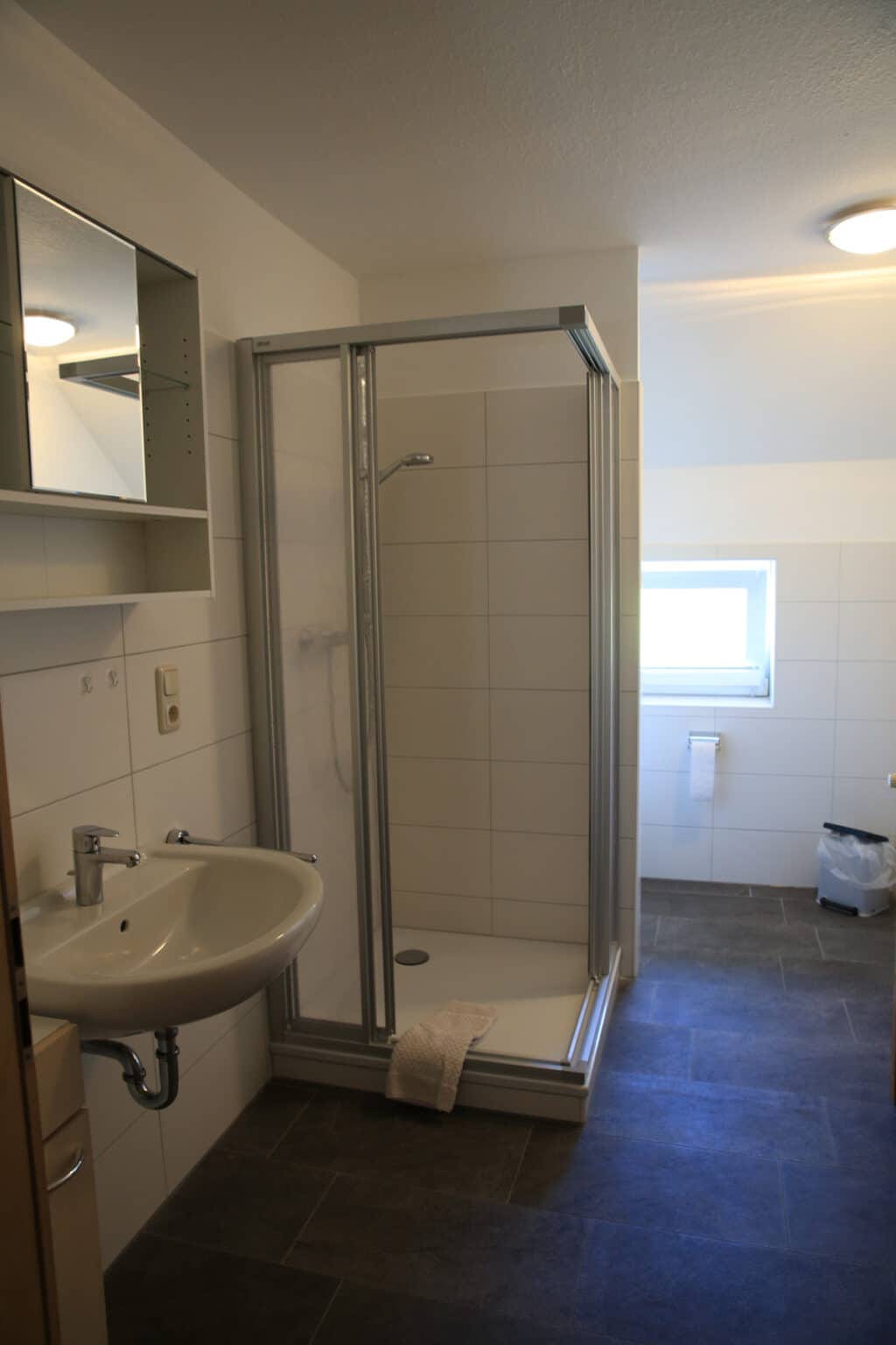 - Badezimmer mit Dusche, Föhn, Handtücher & Duschtücher